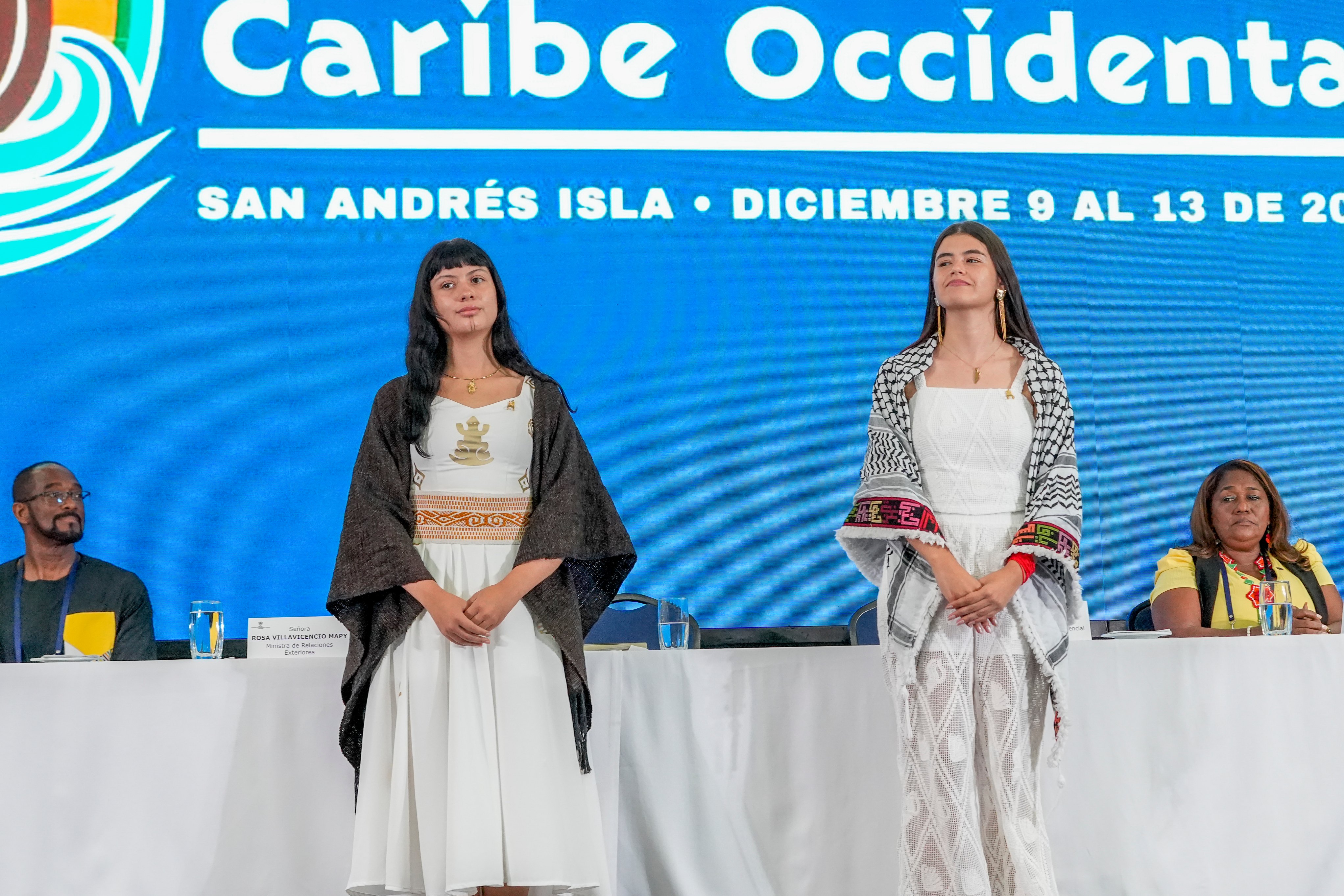 Las colombianas Luna Valentina Barreto y Manuela Bedoya Jaramillo recibieron la condecoración de manos del presidente Petro. Ambas participaron en una flotilla humanitaria con destino a Gaza y, según el mandatario, su acción fue un acto de solidaridad internacional que las enfrentó incluso a actos de piratería por parte de quienes intentaron impedir su misión.