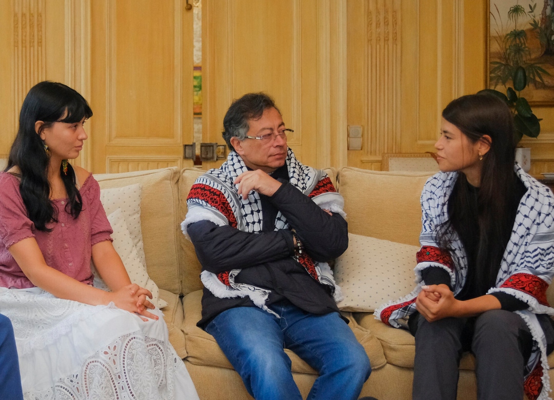 El presidente Gustavo Petro estuvo con ellas y allí les dio unas sentidas palabras sobre su participación en la Flotilla y ser esperanza para la humanidad que ha sido testigo del genocidio que comete Israel contra la población de Palestina.