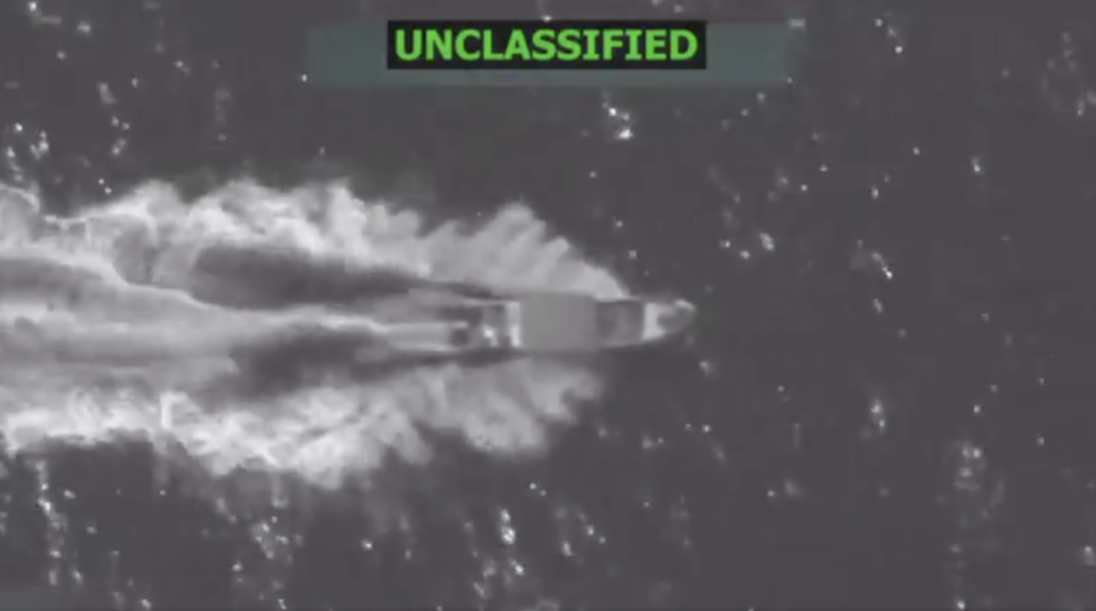 Lancha bombardeada por Estados Unidos en el Pacífico.