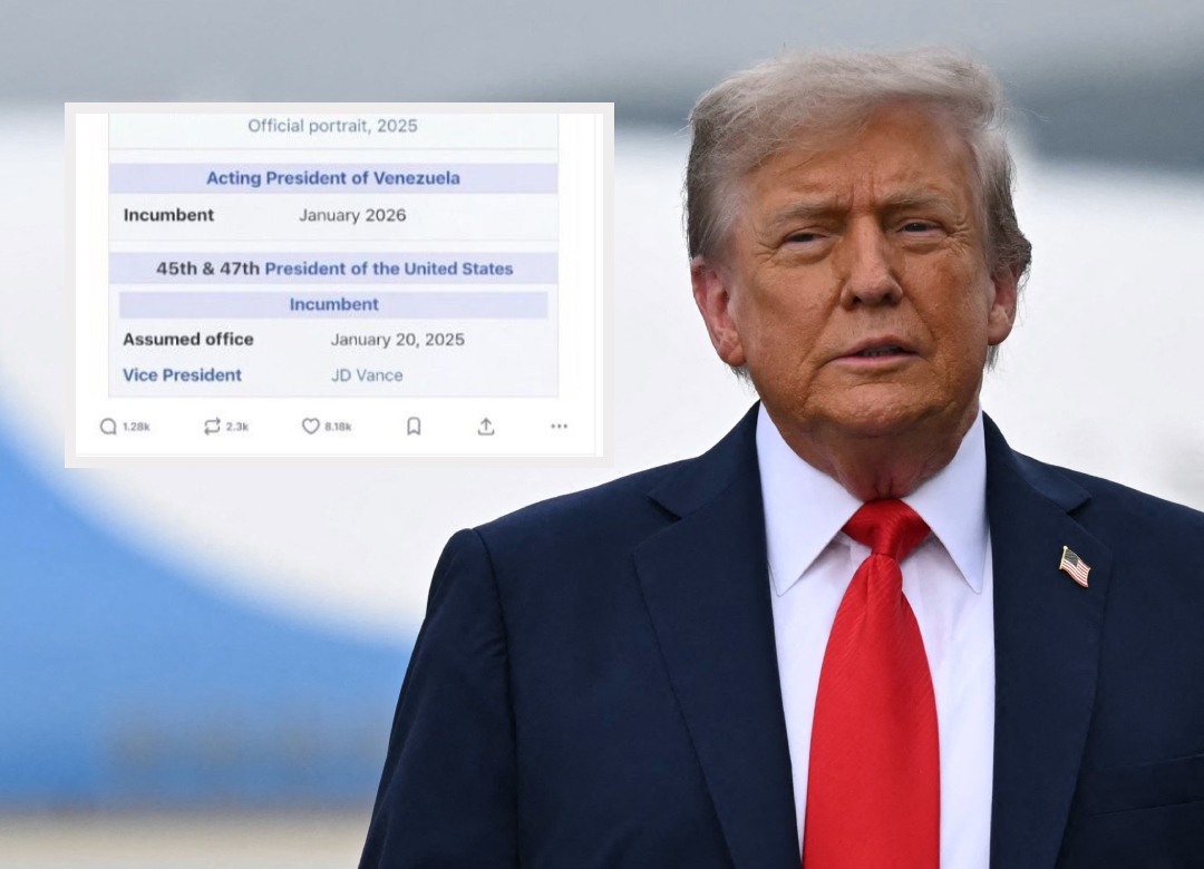 A través de la red social Truth, el presidente de Estados Unidos, Donald Trump, compartió una imagen que le ha dado la vuelta al mundo: una fotografía manipulada en la que se autoproclama como presidente interino de Venezuela.
