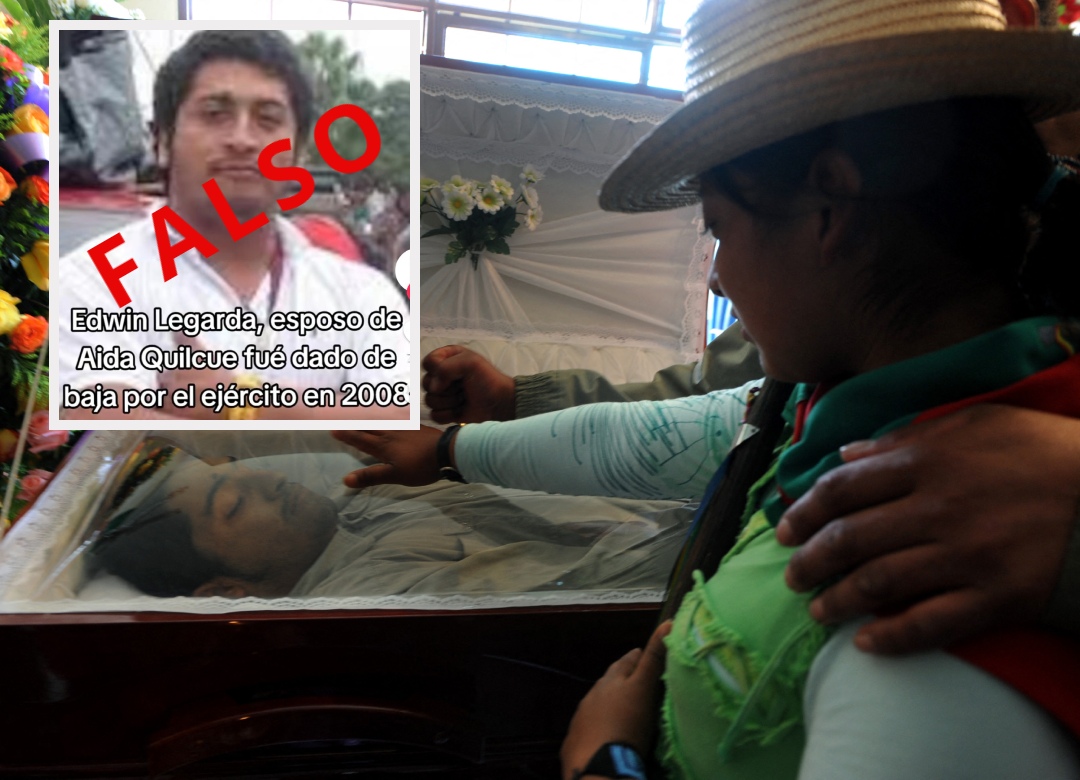 En redes sociales ha comenzado a circular una fotografía de José Edwin Legarda Vásquez, esposo de la senadora y fórmula vicepresidencial Aida Quilcué. Allí se enfatiza que fue asesinado por las extintas guerrillas de las Farc en conjunto con el Ejército en el 2008.