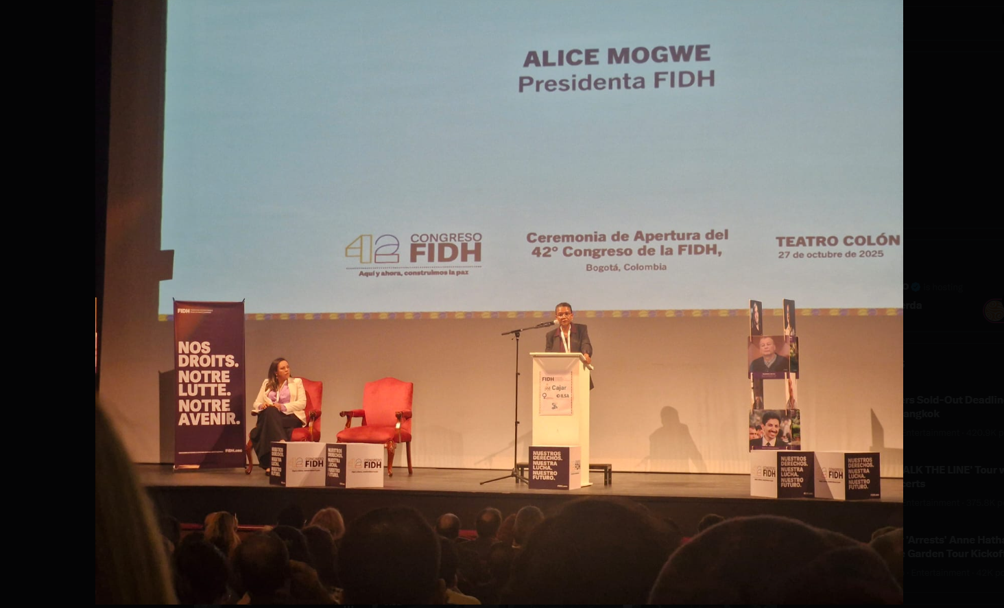 “Palestina nos recuerda que el colonialismo aún no ha muerto”, afirmó Mogwe desde el Teatro Colón. La presidenta de la FIDH aseguró también dijo que el mundo atraviesa una pérdida de decencia moral. El genocidio perpetrado por Israel en Gaza ha puesto en entredicho la universalidad de los derechos humanos y revelado dobles estándares internacionales, según Alice Mogwe.