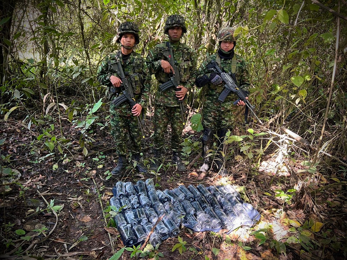 De acuerdo con el reporte, la acción fue adelantada por soldados del Batallón de Infantería No. 18 ‘Coronel Jaime Rooke’, adscrito a la Sexta Brigada, con apoyo de inteligencia militar y del binomio canino antiexplosivos.